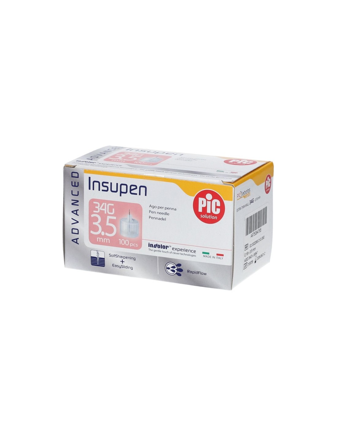 Pic Insupen Advance Gauge Ago Penna Insulina 34x3,5mm 100 Pezzi