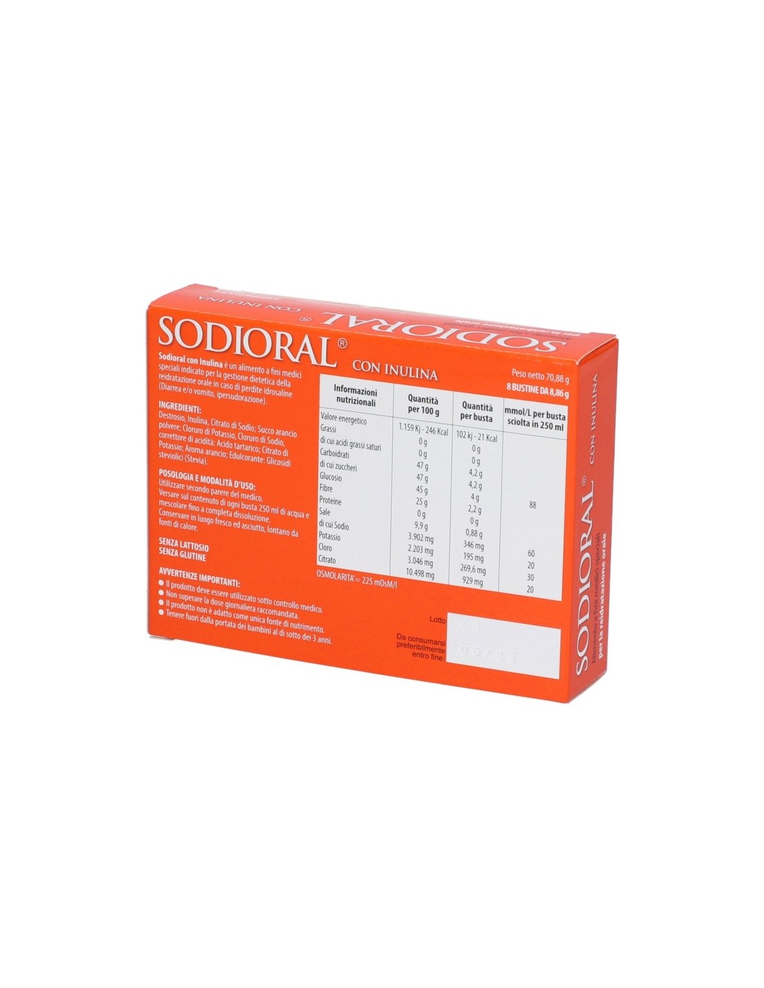 Alimento a fini medici speciali indicato per la gestione dietetica della reidratazione orale in caso di perdite idrosaline (diarrea e/o vomito, ipersudorazione), al gusto di arancia.