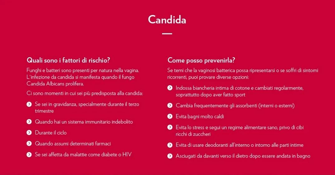 La paziente deve rivolgersi al medico se: e' la prima volta che ha un' infezione vaginale; ha infezioni ricorrenti, almeno quattro infezioni durante l'anno precedente; ha febbre (>= 38 gradi C); ha dolore alla p arte inferiore dell'addome, mal di schiena; a perdite vaginali maleodo ranti; ha nausea; ha un'emorragia vaginale e/o ha contemporaneamente d olore alle spalle. Assorbenti interni, lavande vaginali, spermicidi o altri prodotti per uso vaginale non vanno usati in concomitanza con qu esto prodotto. Durante l'uso vanno evitati i rapporti sessuali, perche ' l'infezione potrebbe essere trasmessa al partner. L'efficacia e l'af fidabilita' dei contraccettivi in lattice come preservativi e diaframm i puo' essere ridotta. Le capsule molli vaginali non devono essere deg lutite.