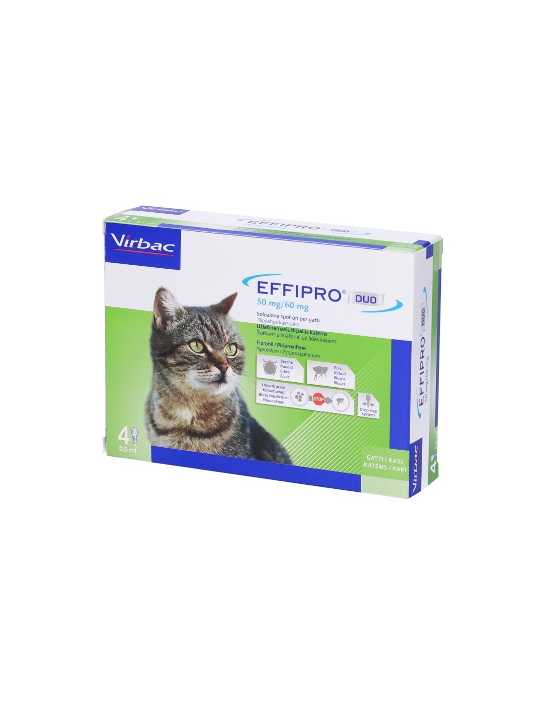 Effipro Duo Spot-On Soluzione 4 Pipette 0,5ml Gatti da 1 a 6 kg