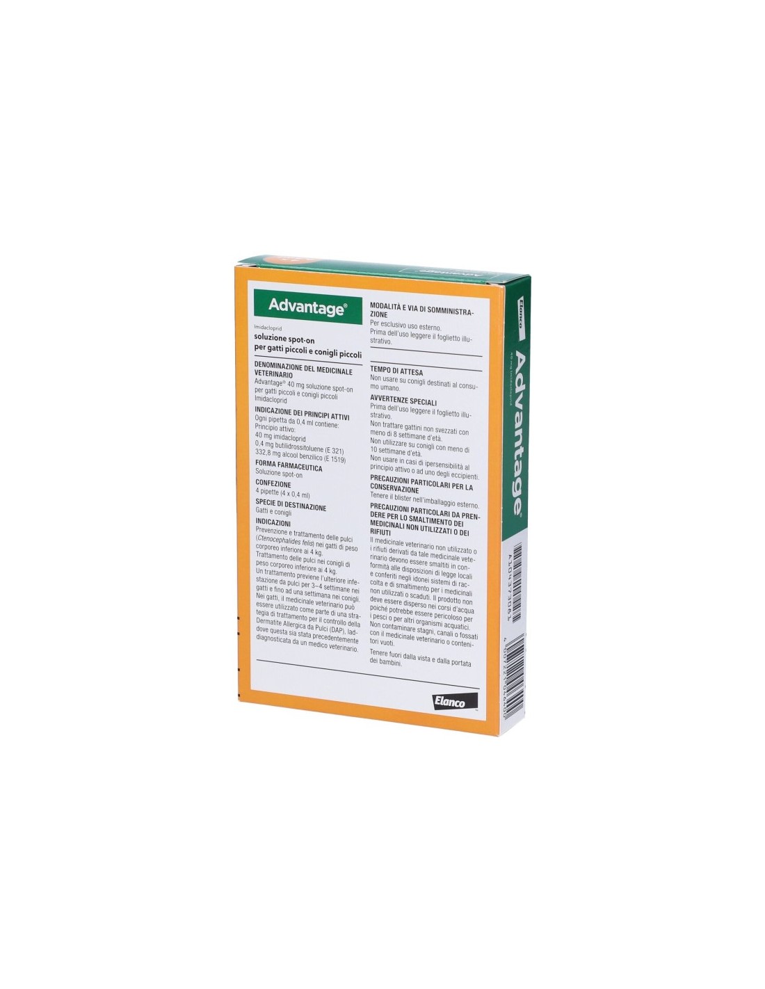Advantage Spot On 4 Pipette 0,4ml Antiparassitario Gatti/Conigli Piccoli