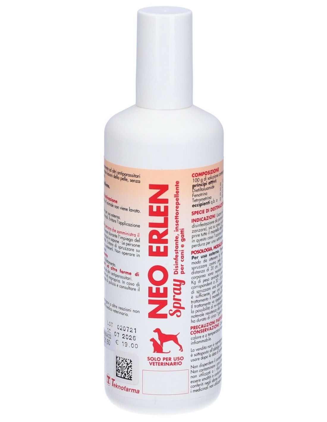 Usare nel cane e nel gatto per la disinfestazione da parassiti (pulci, pidocchi, zecche e zanzare), sia su aree circoscritte infestate, sia per ricoprire tutto il mantello dell'animale con un velo di prodotto; in questo caso l'azione disinfestante e insettorepellente perdura per una settimana. Non usare contemporaneamente ad altri antiparassitari - Non utilizzare il prodotto su animali malati o con estese lesioni della pelle, senza avere preventivamente consultato il Medico Veterinario. L'azione antiparassitaria e repellente dura sette giorni se l'animale non viene lavato. Precauzioni speciali per l?impiego negli animali. Solo per uso esterno. Evitare di spruzzare sugli occhi e sulla bocca degli animali. Evitare l?applicazione nel condotto uditivo esterno. Precauzioni speciali che devono essere adottate dalla persona che somministra il prodotto agli animali. Non mangiare, né bere, né fumare durante l'impiego del prodotto. In caso di contatto con la pelle, lavarsi con acqua e sapone. Le persone sensibili dovrebbero evitare il contatto con il prodotto. Evitare di spruzzare su alimenti, mangimi e bevande o recipienti destinati a contenerli. Non operare in presenza di fiamme libere o di resistenze incandescenti. Non usare in quantità eccessiva ed impropria. In caso di eccessivo dosaggio lavare l?animale con uno shampoo di pulizia e consultare il medico veterinario. L'azione antiparassitaria e repellente dura sette giorni se l'animale non viene lavato. Precauzioni speciali per l?impiego negli animali. Solo per uso esterno. Evitare di spruzzare sugli occhi e sulla bocca degli animali. Evitare l?applicazione nel condotto uditivo esterno. Precauzioni speciali che devono essere adottate dalla persona che somministra il prodotto agli animali. Non mangiare, né bere, né fumare durante l'impiego del prodotto. In caso di contatto con la pelle, lavarsi con acqua e sapone. Le persone sensibili dovrebbero evitare il contatto con il prodotto. Evitare di spruzzare su alimenti, mangimi e bevande o recipienti destinati a contenerli. Non operare in presenza di fiamme libere o di resistenze incandescenti. Non usare in quantità eccessiva ed impropria. In caso di eccessivo dosaggio lavare l'animale con uno shampoo di pulizia e consultare il medico veterinario. Segnalare eventuali reazioni avverse gravi e/o reazioni non menzionate in questo RCP. Il prodotto puo' essere usato durante la gravidanza e l'allattamento.