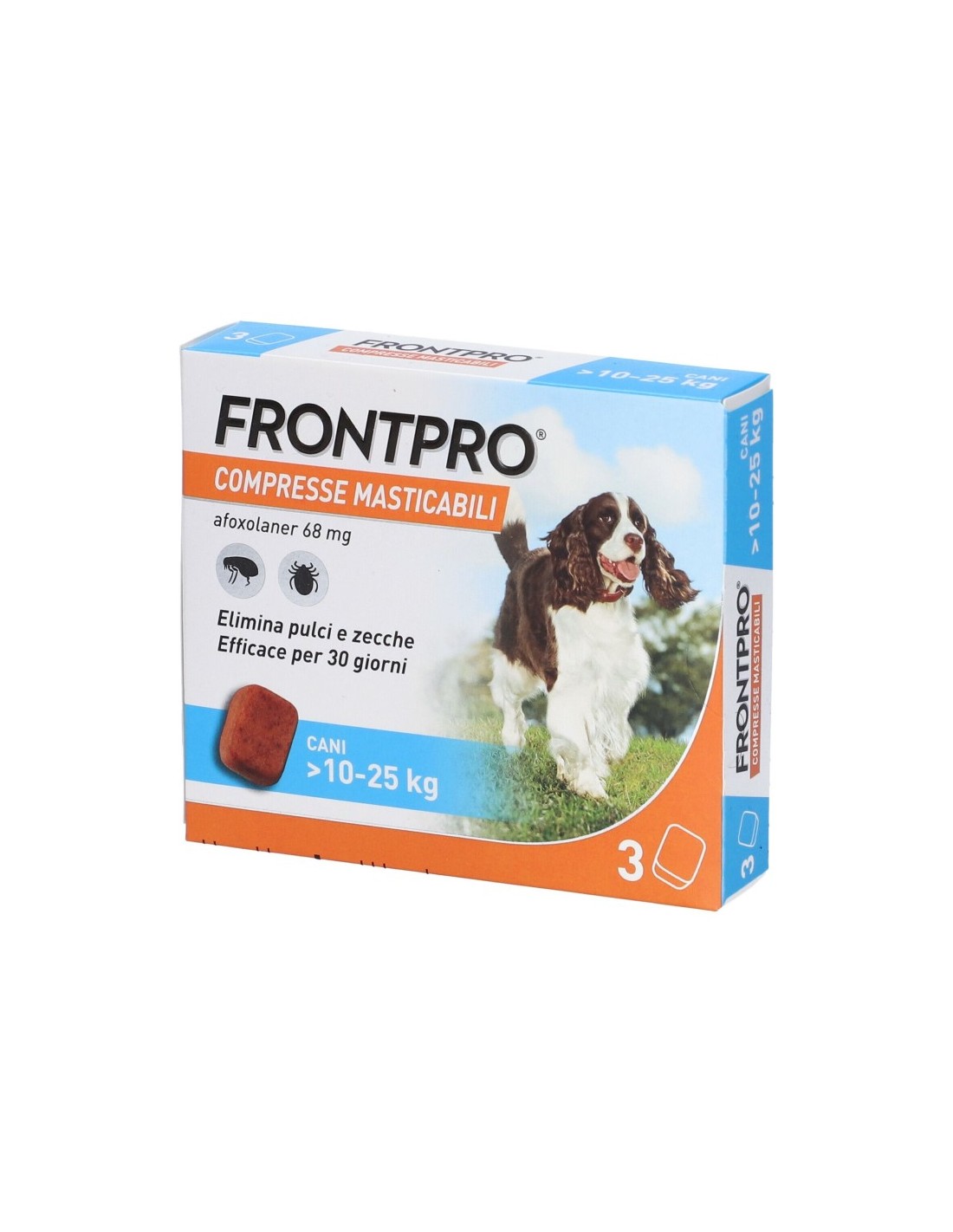 Frontpro Contro Pulci e Zecche 3 Compresse Masticabili Per Cani 10-25 Kg 68 Mg