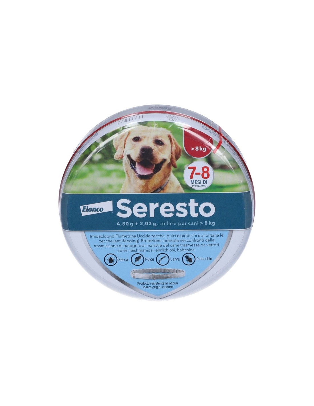 Per il trattamento (Ctenocephalides felis) e la prevenzione dell'infestazione da pulci (Ctenocephalides felis, C. canis ) per 7-8 mesi. Protegge l'ambiente circostante l'animale dallo sviluppo di larve di pulci per 8 mesi. Seresto puo' essere utilizzato come parte di una strategia di trattamento per il controllo della Dermatite Allergica da Pulci ( DAP). Il prodotto ha per 8 mesi una persistente efficacia acaricida (abbattente) contro le infestazioni da zecche (Ixodes ricinus, Rhipiceph alus sanguineus, Dermacentor reticulatus) e un'efficacia repellente (anti-feeding) contro le infestazioni da zecche (Ixodes ricinus, Rhipice phalus sanguineus) . Il prodotto è efficace contro larve, ninfe e zecche adulte. Le zecche già presenti sul cane prima del trattamento potrebbero non essere uccise entro 48 ore dopo l'applicazione del collare e restare attaccate e visibili. Si raccomanda pertanto di rimuovere le zecche già presenti sul cane al momento dell'applicazione. La prevenzione delle infestazioni da nuove zecche inizia entro due giorni dopo l'applicazione del collare. Il prodotto fornisce protezione indiretta nei confronti della trasmissione dei patogeni Babesia canis vogeli e Ehrlichia canis da parte della zecca vettore Rhipicephalus sanguineus , riducendo così il rischio di babesiosi canina e ehrilichiosi canina per 7 mesi. Per il trattamento dell'infestazione da pidocchi pungitori/masticatori (Trichodectes canis). Idealmente, il collare dovrebbe essere applicato prima dell'inizio della stagione delle pulci o delle zecche.
