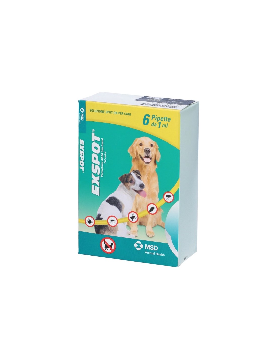 E' indicato per il trattamento di zecche (Rhipicephalus sanguineus, Ix odes ricinus, Dermacentor variabilis, Amblyomma americanum), flebotomi (Phlebotomus perniciosus, Lutzomya cruzi, L. corumbaensis), zanzare ( Aedes aegypti, A. taeniorhynchus), mosche (Stomoxys calcitrans e Musca domestica), pulci (Ctenocephalides felis e C. canis) e pidocchi nel cane. L'uso regolare di EXSPOT, ad intervalli mensili, elimina zecche, flebotomi, zanzare, mosche, pulci e pidocchi ed assicura una protezion e dalla reinfestazione fino a 4 settimane.