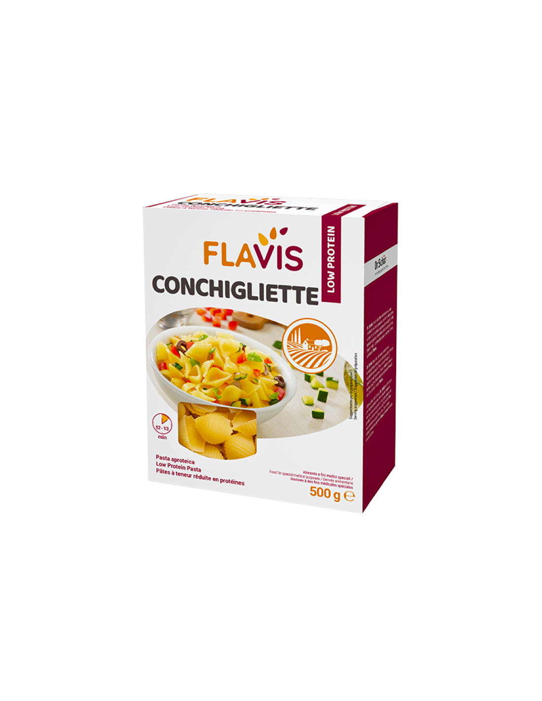 Conchigliette Aproteiche ricche in fibre e povere in sodio, Potassio e Fosforo.