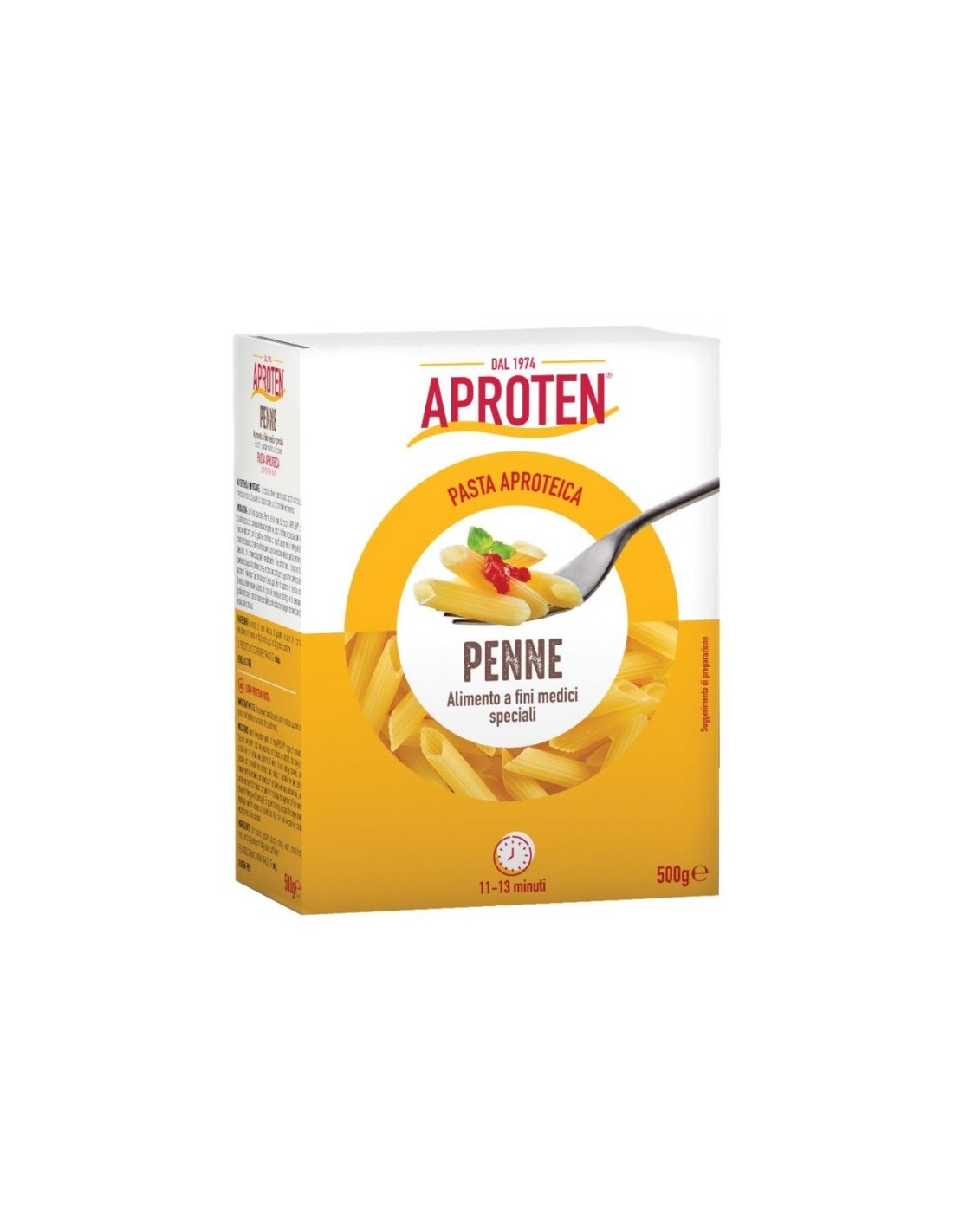 La Pasta aproteica della linea di prodotti APROTEN, è caratterizzata da: contenuto basso di proteine, sodio, fosforo e potassio che la rendono indicata per la gestione dietetica di insufficienze renali (nefropatie); contenuto basso di tirosina e fenilalanina che la rendono indicata per la gestione dietetica di aminoacidopatie metaboliche (fenilchetonuria, tirosinemia); contenuto basso di proteine che la rendono indicata per la gestione dietetica del morbo di Parkinson (in terapia con Levodopa). Per il paziente in terapia con Levodopa deve essere valutato il grado di eventuale disfagia e le eventuali problematiche di malnutrizione per difetto che possono insorgere in condizioni di restrizione proteica.