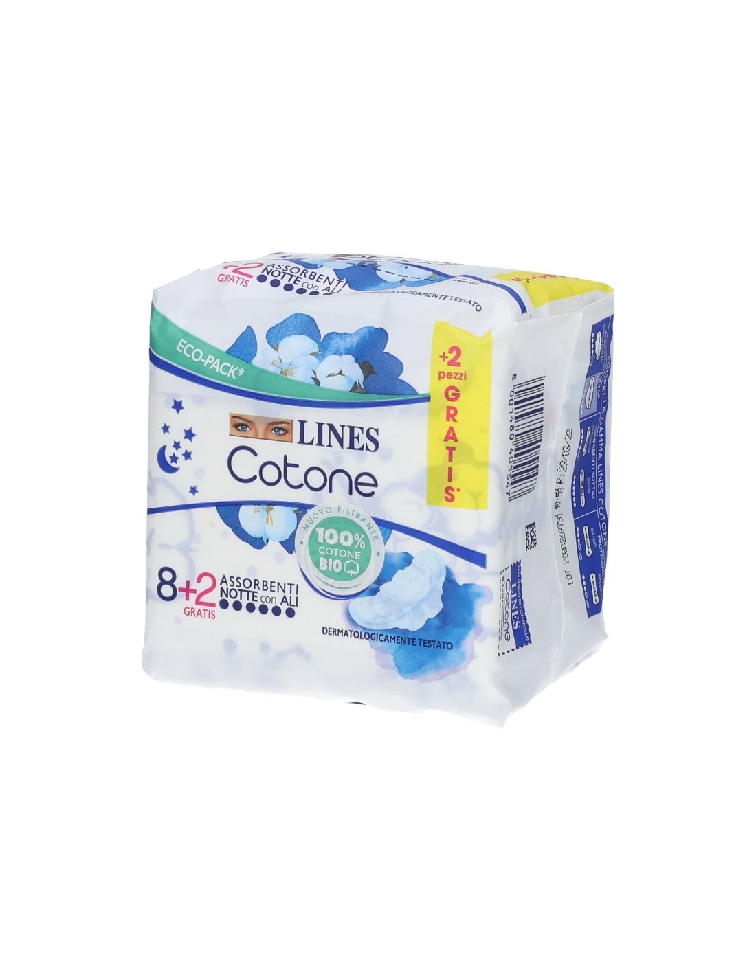 Lines Cotone Bio 10 Assorbenti Notte Con Ali