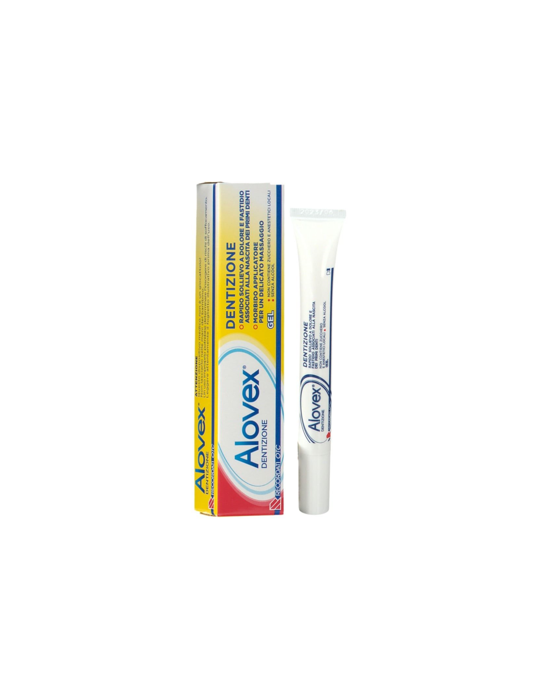Alovex Dentizione protegge con una pellicola la gengiva dei bambini aiutando a ridurre i fastidi associati alla nascita dei primi dentini. È dotato di un morbido applicatore di setole di silicone che permette di massaggiare dolcemente la gengiva, donando un piacevole sollievo da fastidio e dolore. Bisogna distinguere tra dentizione decidua, o primi dentini, composta da 20 denti di cui 8 incisivi, 4 canini e 8 molari in un'età compresa tra i 3 mesi e i 2 anni di vita e dentizione permanente che avviene in una fase successiva.