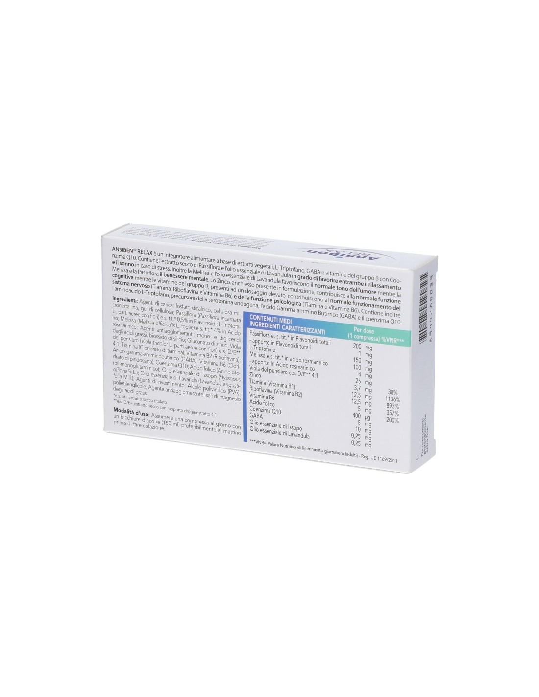 Integratore alimentare a base di estratti vegetali, L-Triptofano, GABA e vitamine del gruppo B con Coenzima Q10.