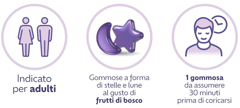 Si consiglia di assumere una pastiglia gommosa 30 minuti prima di coricarsi e in previsione di un periodo di sonno prolungato. L'effetto benefico si ottiene con l'assunzione di 1 mg di Melatonina, poco prima di coricarsi.