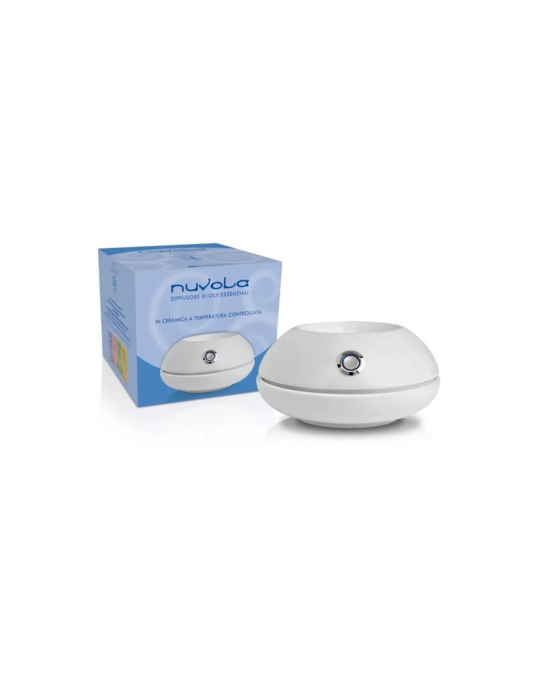 Diffusore di oli essenziali in ceramica a temperatura controllata (circa 60°C) che permette la diffusione del profumo degli oli essenziali in modo delicato e costante, mantenendone tutte le loro proprietà.