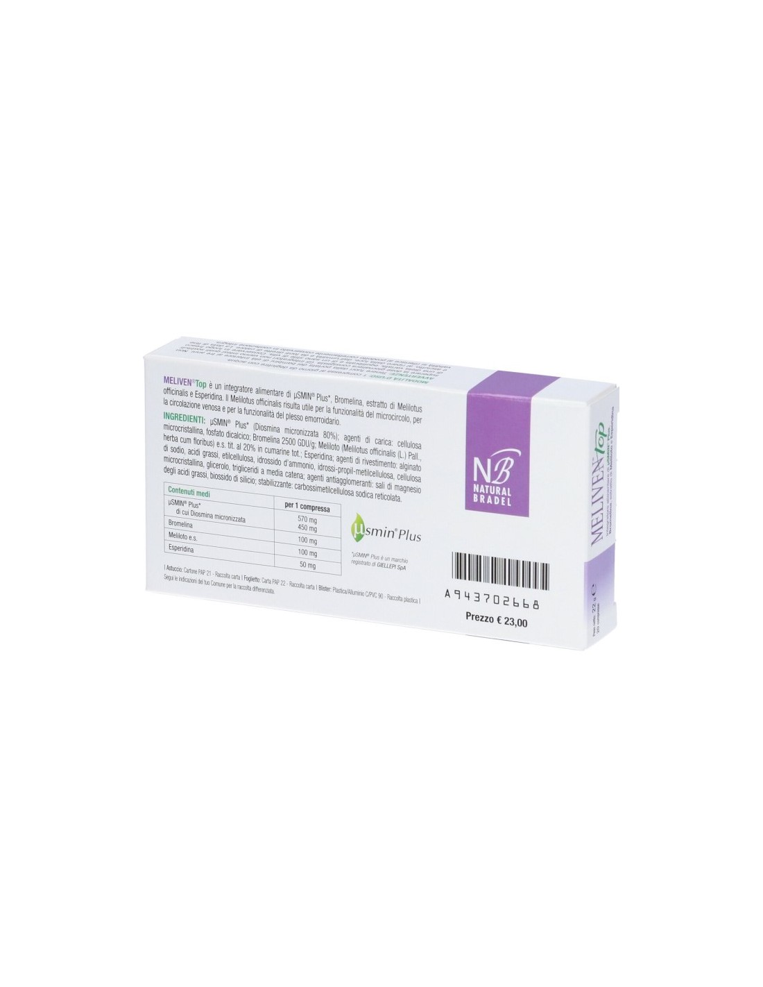 Integratore alimentare di microSMIN Plus (diosmina micronizzata 80%), bromelina, estratto di meliloto e esperidina.