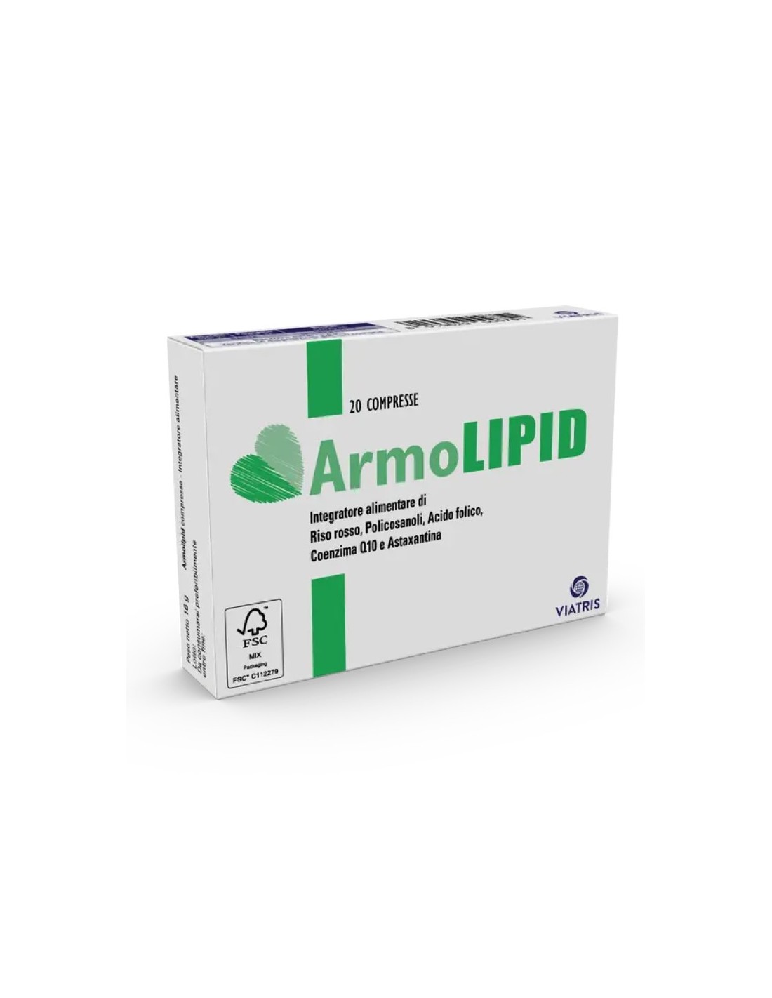 Integratore alimentare di riso rosso fermentato (Monascus purpureus), policosanoli, acido folico, coenzima Q10 e oleoresina ricca di astaxantina derivata dall'alga Haematococcus pluvialis.