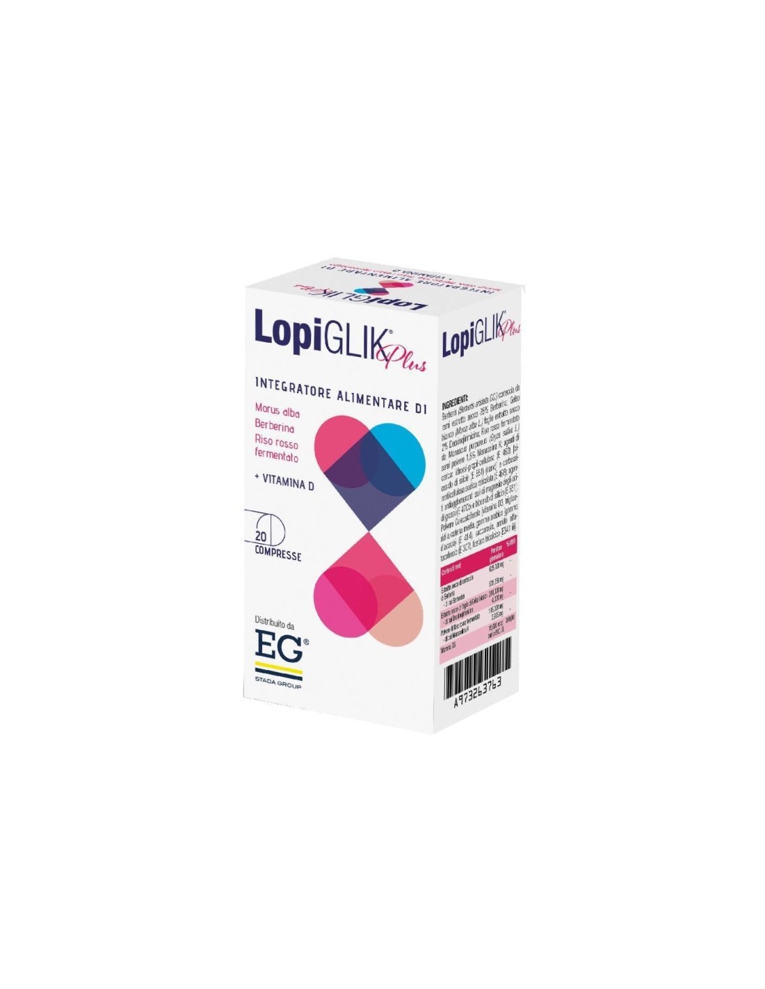 Integratore alimentare a base di Morus alba, berberina, monacoline da riso rosso fermentato e vitamina D. La Berberis aristata DC contenuta in LopiGLIK Plus contribuisce alla regolare funzionalità dell'apparato cardiovascolare. La Morus alba L. contenuta nel prodotto aiuta a controllare il metabolismo dei lipidi.