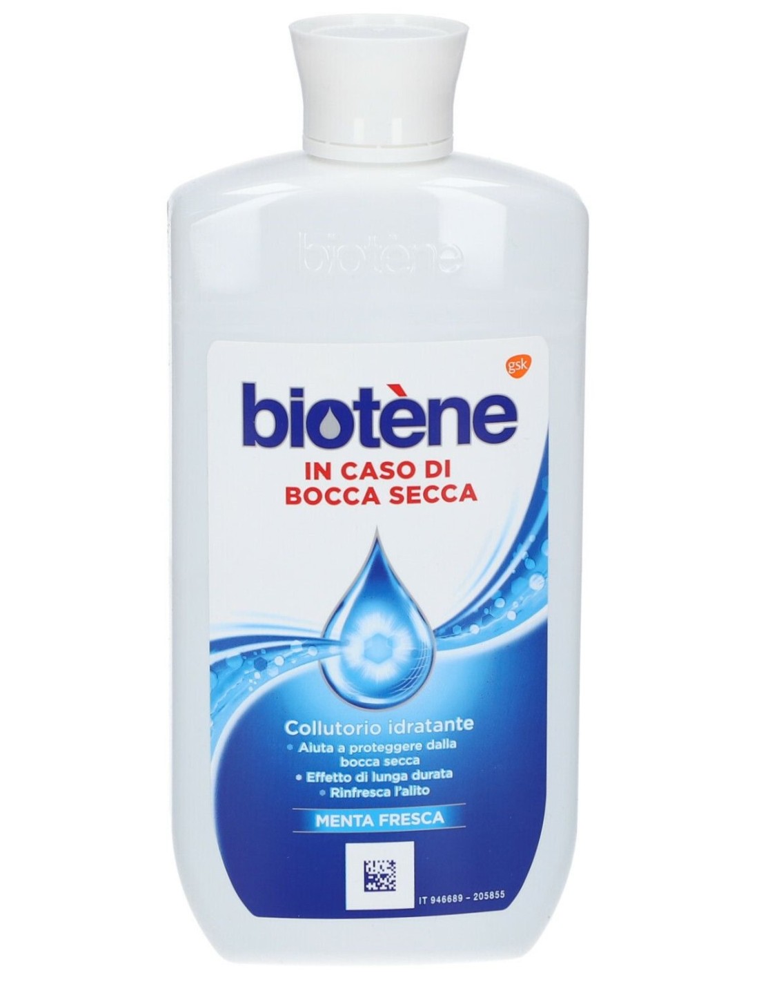 Il Collutorio idratante Biotène per la bocca secca è per fornire un sollievo immediato dai sintomi della bocca secca che dura fino a 4 ore mentre rinfresca l'alito.