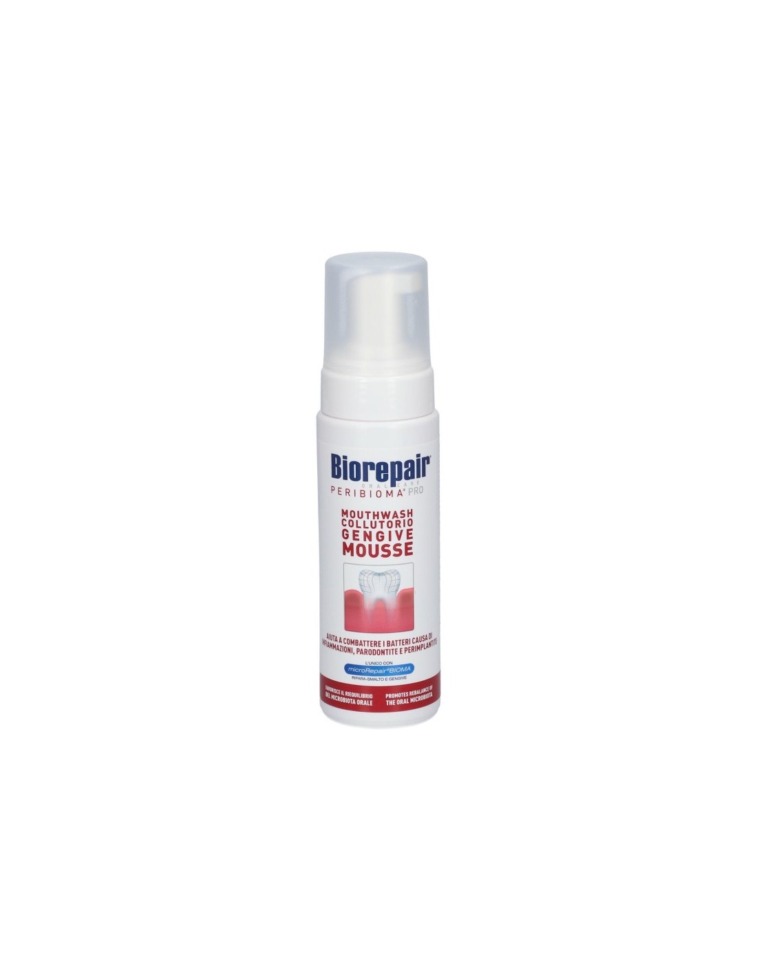Mousse Biorepair PERIBIOMA PRO, dalla morbida e soffice consistenza, avvolge delicatamente le gengive donando sollievo e protezione duratura. La formula è a base di microRepair BIOMA, microcristalli ripara-smalto* arricchiti con specifici Probiotici selezionati che aiutano a riequilibrare il normale microbiota orale per proteggere dalle principali cause delle infiammazioni del cavo orale.