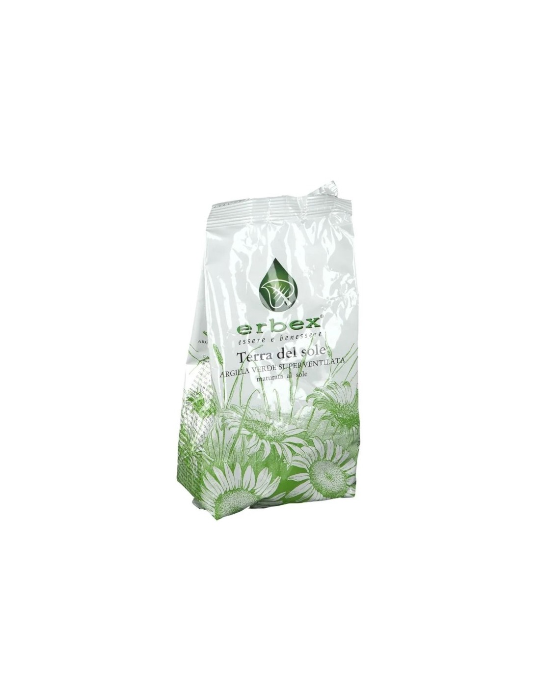 Argilla verde superventilata maturata al sole. L'argilla verde Erbex è stata sottoposta a severi controlli batteriologici, presenta una elevata capacità di scambio cationico ed un eccezionale grado di finezza. Non contiene gesso e sabbia, elementi che impoveriscono la qualità del prodotto. L'argilla verde Erbex è un silicato di alluminio ricco di ossidi di ferro magnesio, calcio, sodio e potassio.
