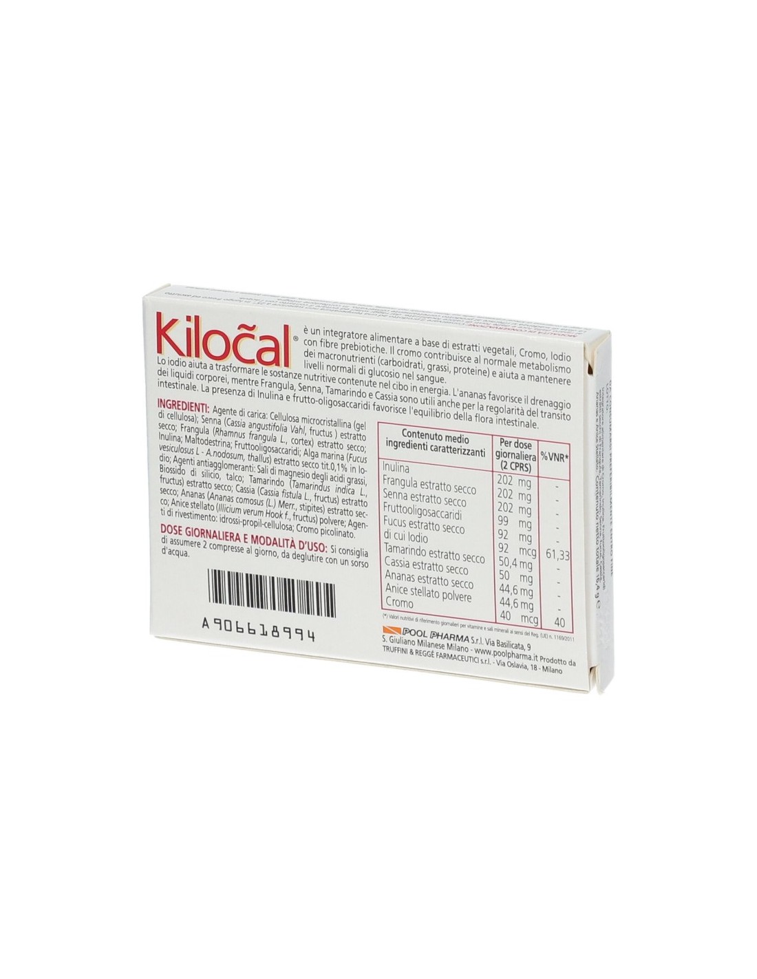 Non eccedere la dose consigliata. Tenere fuori dalla portata dei bambini al di sotto dei 3 anni. Gli integratori non vanno intesi come sostituti di una dieta variata ed equilibrata ed uno stile di vita sano. Il prodotto deve essere impiegato nell’ambito di una dieta ipocalorica adeguata seguendo uno stile di vita sano con un buon livello di attività fisica. Se la dieta viene seguita per periodi prolungati, superiori alle 3 settimane, si consiglia di sentire il parere del medico. Kilocal contiene estratti di Senna, Cassia fistula, Tamarindo, Frangula per cui il suo impiego è proponibile quando occorra favorire anche il transito intestinale.