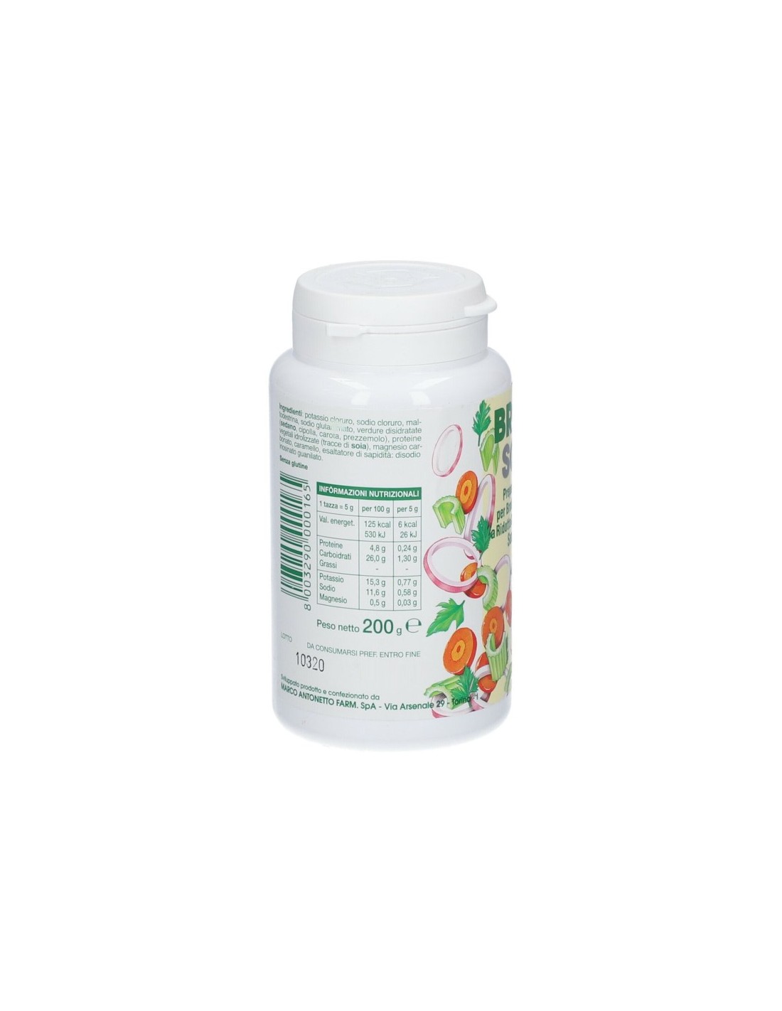 Preparato per brodo e condimento a ridotto contenuto di sodio e praticamente privo di grassi (0,3%). Preparato vegetale con proteine vegetali e verdure (sedano, carote, cipolle e prezzemolo). Rispetto al dado tradizionale, non contiene grassi e apporta meno della metà del sale mediamente contenuto.