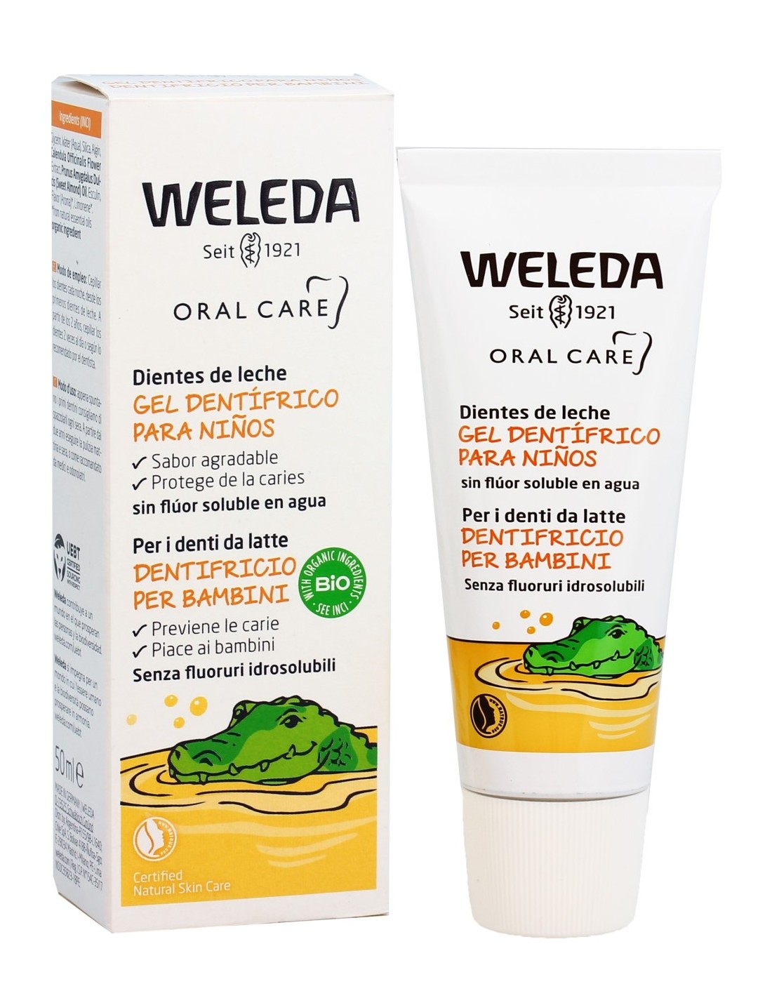 Dentifricio in gel che accompagna la sana crescita dei denti da latte.