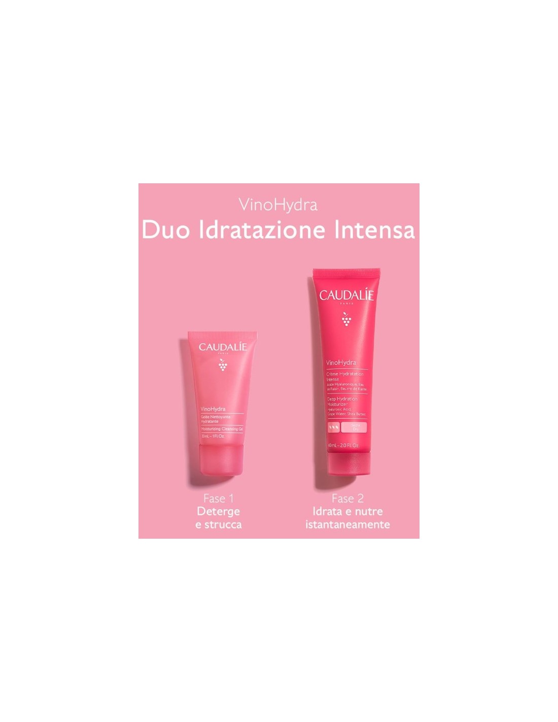 In questo cofanetto in edizione limitata troverai: la Crema Idratazione Intensa VinoHydra + il Gel Detergente Idratante in formato da viaggio.