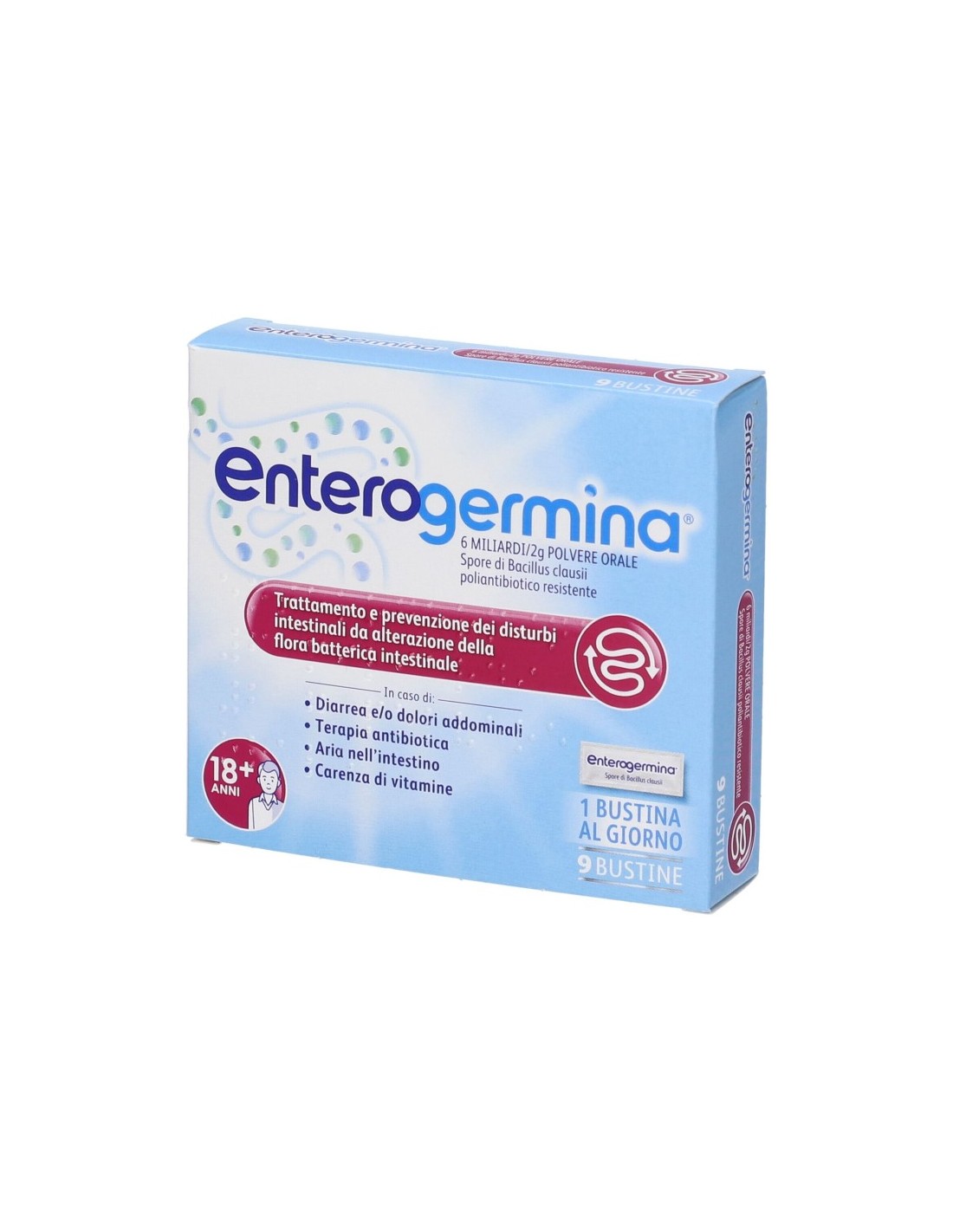 Ogni bustina contiene 6 miliardi di spore di Bacillus clausii poliantibiotico resistente.