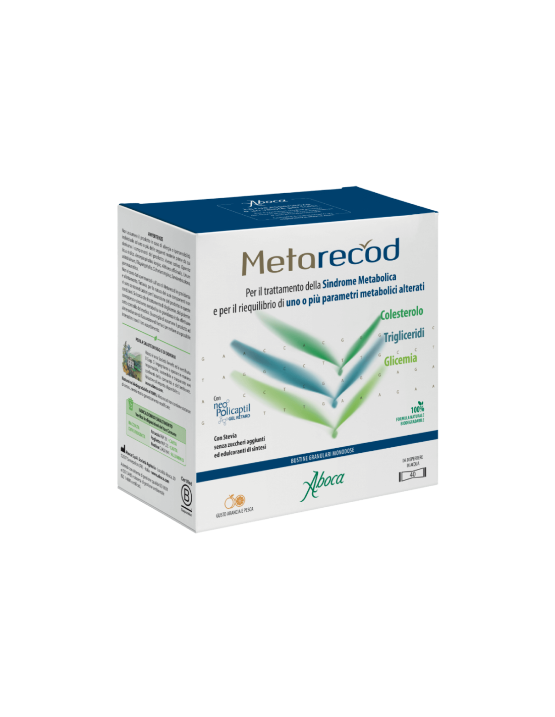 Metarecod è un dispositivo medico utile per il trattamento della sindrome metabolica e il riequilibrio di parametri metabolici alterati quali livelli di colesterolo, trigliceridi, glucosio e valori di circonferenza addominale.