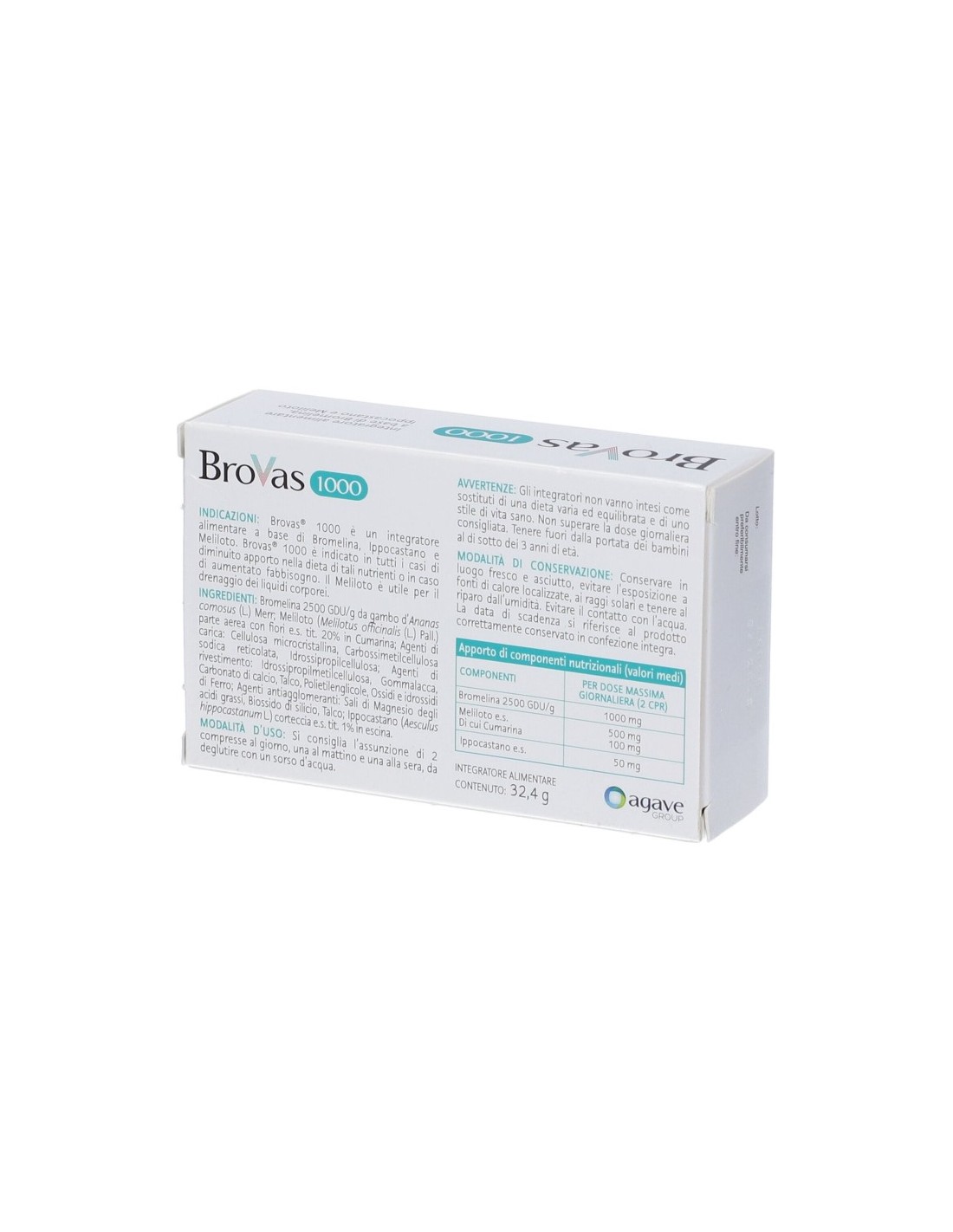 Integratore alimentare a base di bromelina, ippocastano e meliloto. Brova 1000 è indicato in tutti i casi di diminuito apporto nella dieta di tali nutrienti o in caso di aumentato fabbisogno. Il meliloto è utile per il drenaggio dei liquidi corporei.