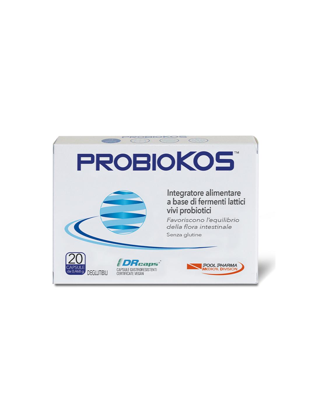 Confezione da 20 capsule, gastroresistenti e deglutibili, da 0,468 g.
