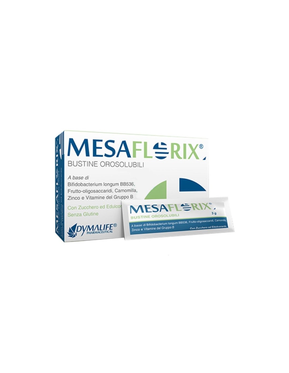 Mesaflorix Integratore Alimentare è un complemento alimentare a base di Bifidobacterium longum BB536, Frutto-oligosaccaridi, Cammilla, Zinco e Vitamine del gruppo B. Con i suoi prebiotici e probiotici favorisce l'equilibrio della flora intestinale.