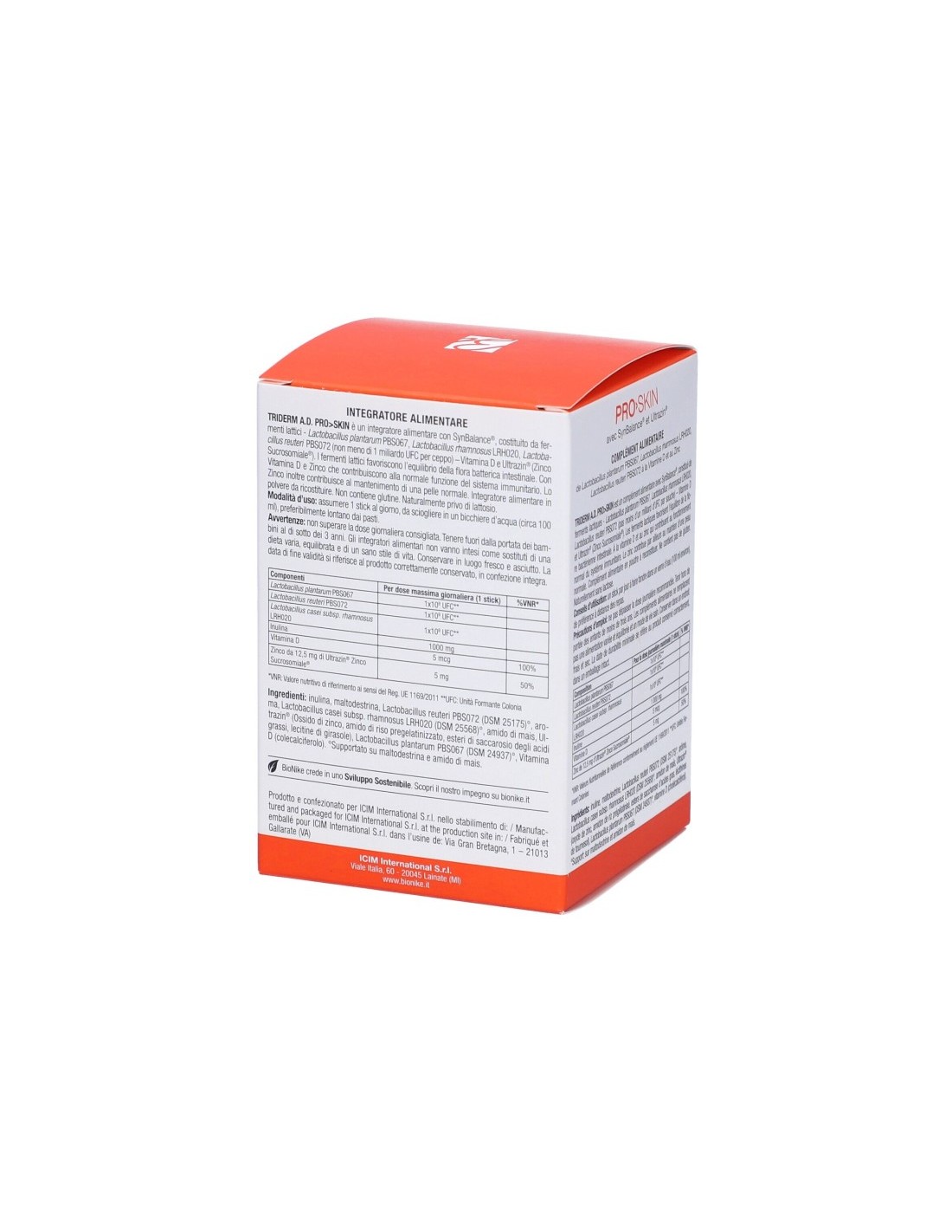 Contiene SynBalance, complesso sinergico di fermenti lattici - Lactobacillus plantarum PBS067, Lactobacillus rhamnosus LRH020, Lactobacillus reuteri PBS072 (non meno di 1 miliardo UFC per ceppo) - oltre a Vitamina D e Ultrazin (Zinco Sucrosomiale). I fermenti lattici favoriscono l’equilibrio della flora batterica intestinale. La Vitamina D e lo Zinco che contribuiscono alla normale funzione del sistema immunitario. Lo Zinco inoltre contribuisce al mantenimento di una pelle normale.