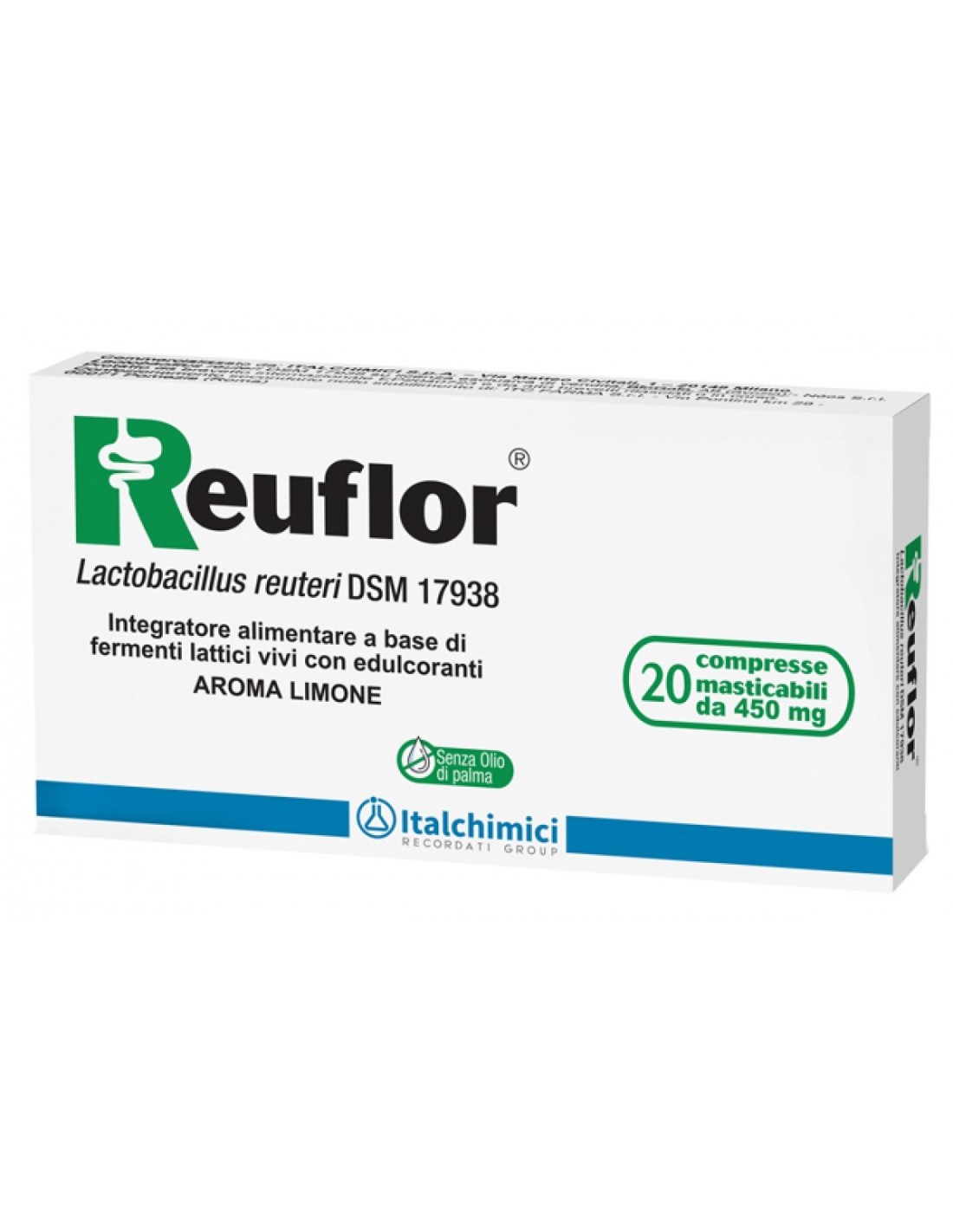 Integratore alimentare a base di fermenti lattici vivi con edulcoranti integratore alimentare di fermenti lattici vivi (Lactobacillus reuteri DSM 17938) utile per favorire l'equilibrio della flora batterica intestinale.