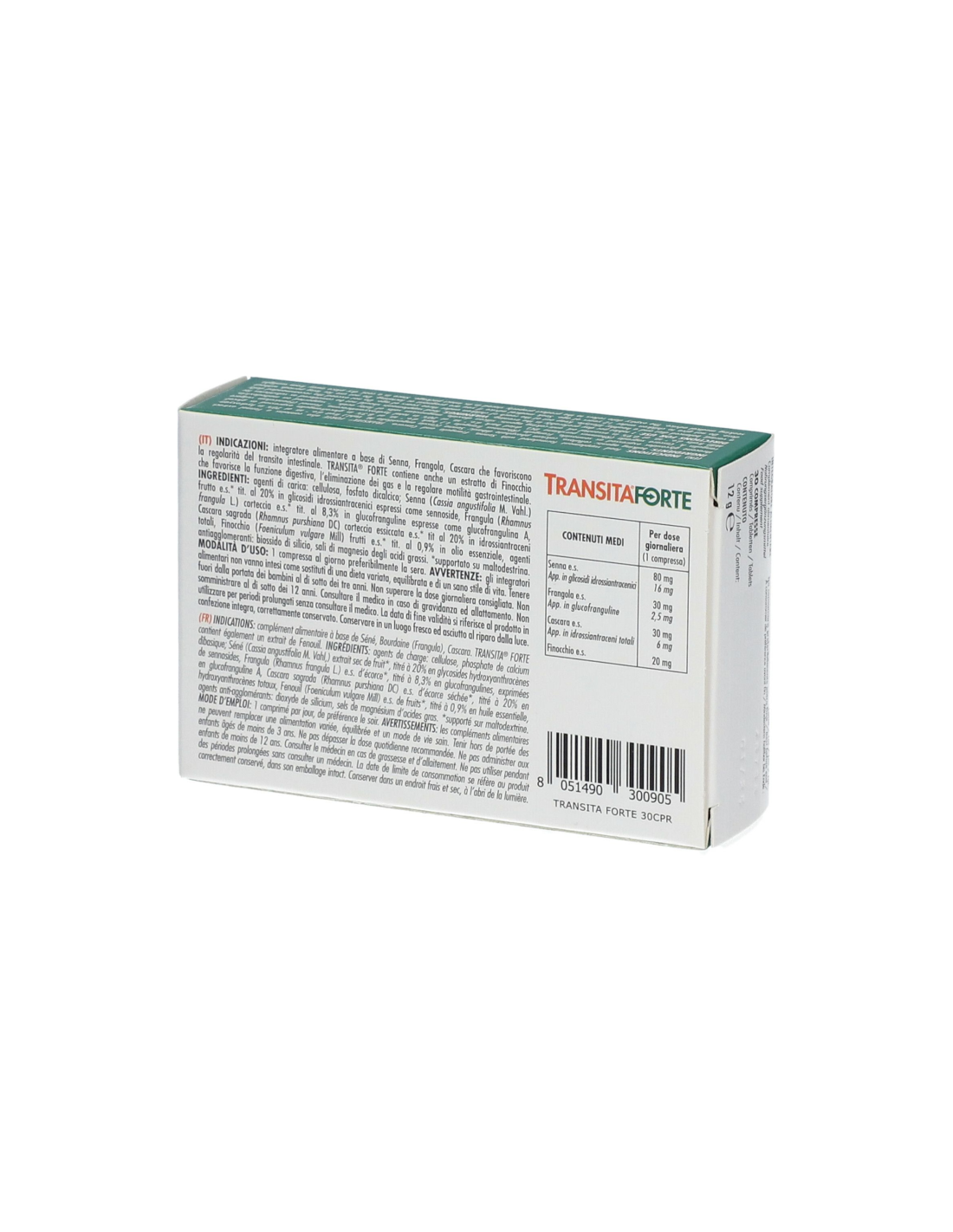 Integratore alimentare a base di senna, frangula e cascara, per favorire la regolarità del transito intestinale. Transita forte contiene anche un estratto di finocchio che favorisce la funzione digestiva, l'eliminazione dei gas e la regolare motilità gastrointestinale.