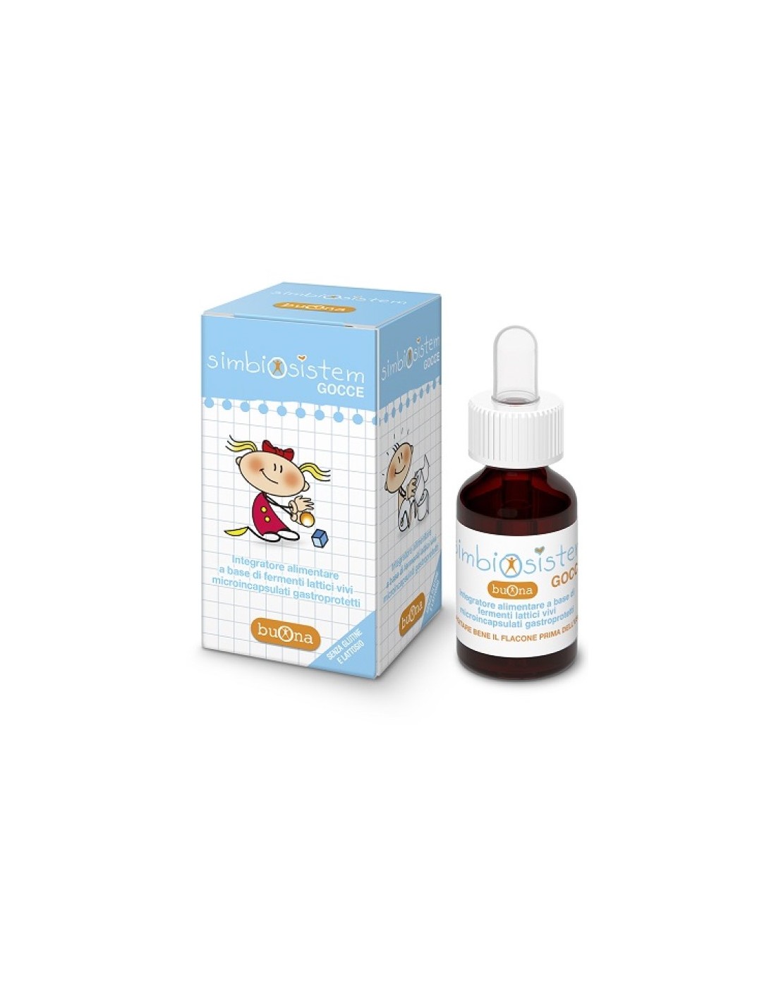 Integratore alimentare a base di fermenti lattici vivi (Lactobacillus rhamnosus e Lactobacillus reuteri), utile per favorire l’equilibrio della flora intestinale. Nella formulazione di Simbiosistem gocce sono stati utilizzati ceppi probiotici in forma microincapsulata, che conferisce una maggiore resistenza al transito gastrico.