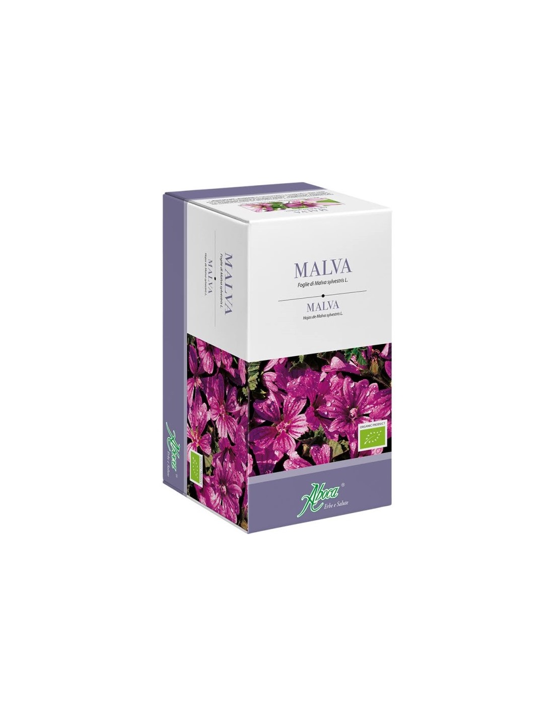 Foglie di malva (Malva sylvestris L.) da agricoltura biologica.