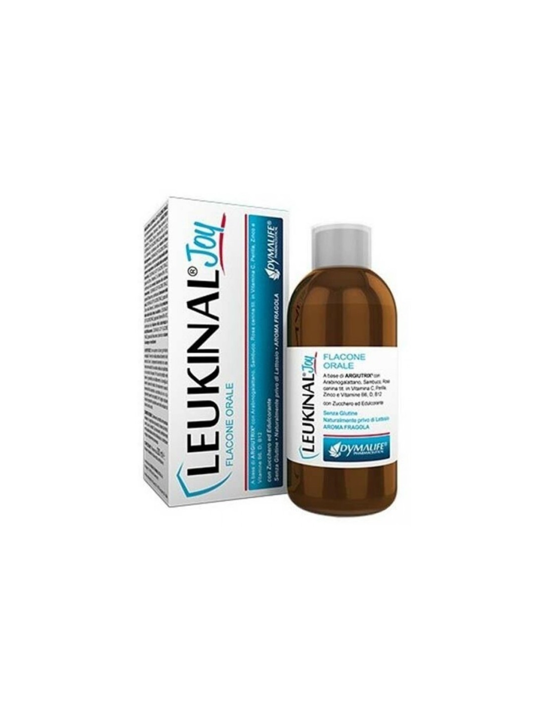 Leukinal Joy flacone orale è un complemento a base di Argiutrix con Arabinogalattano, Sambuco, Rosa canina tit. in Vitamina C, Perilla, Zinco e Vitamine B6, D, B12: