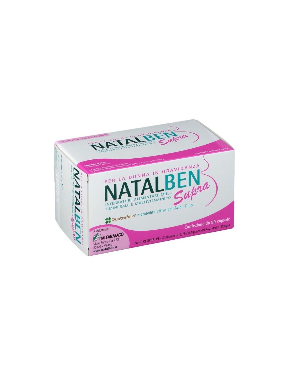 NATALBEN Supra contiene gli elementi che, insieme alla dieta, contribuiscono al benessere della donna durante il periodo della gestazione. In particolare la gravidanza determina un aumento importante delle necessità di acido folico. L’acido folico è una vitamina contenuta nella verdura, frutta, legumi e cereali integrali. Per poter svolgere la sua funzione, l’acido folico assunto con la dieta, deve essere convertito nella sua forma attiva, il 5-MTHF (5-metiltetraidrofolato). NATALBEN Supra contenendo già Quatrefolic 5-MTHF (5-metiltetraidrofolato) cioè la forma attiva dell’acido folico, assicura l’apporto necessario all’organismo umano durante la divisione cellulare e la crescita tissutale, particolarmente importanti durante la gravidanza.