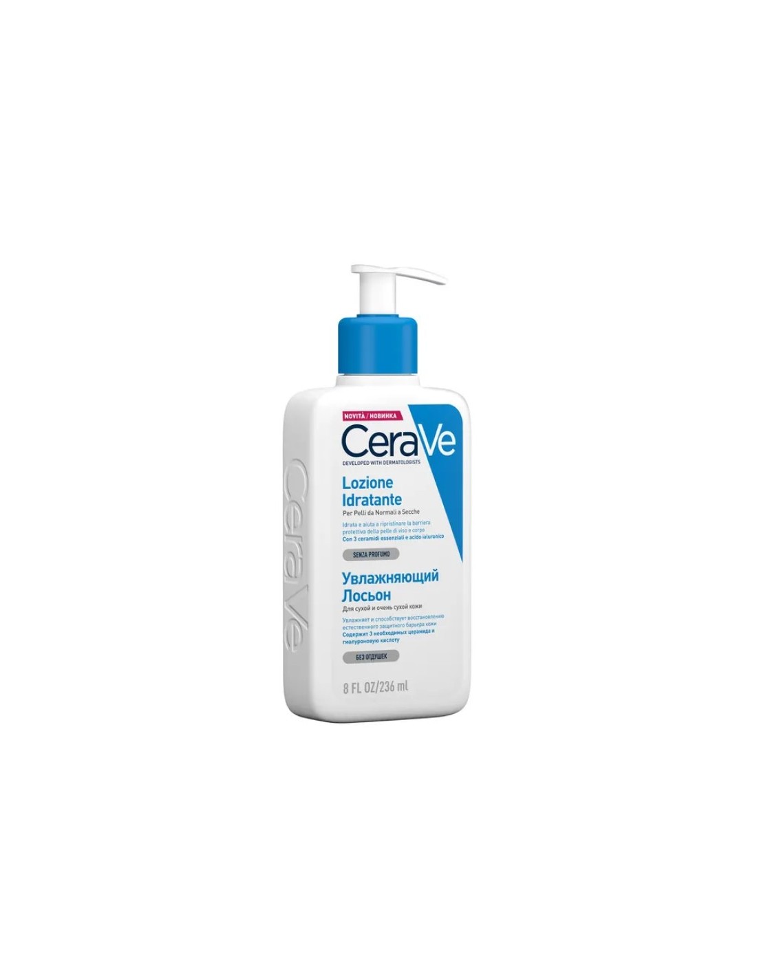 Lozione idratante. Questa formula dalla consistenza leggera e non grassa contiene 3 ceramidi essenziali e acido ialuronico per idratare e aiutare a ripristinare la barriera protettiva della pelle.
