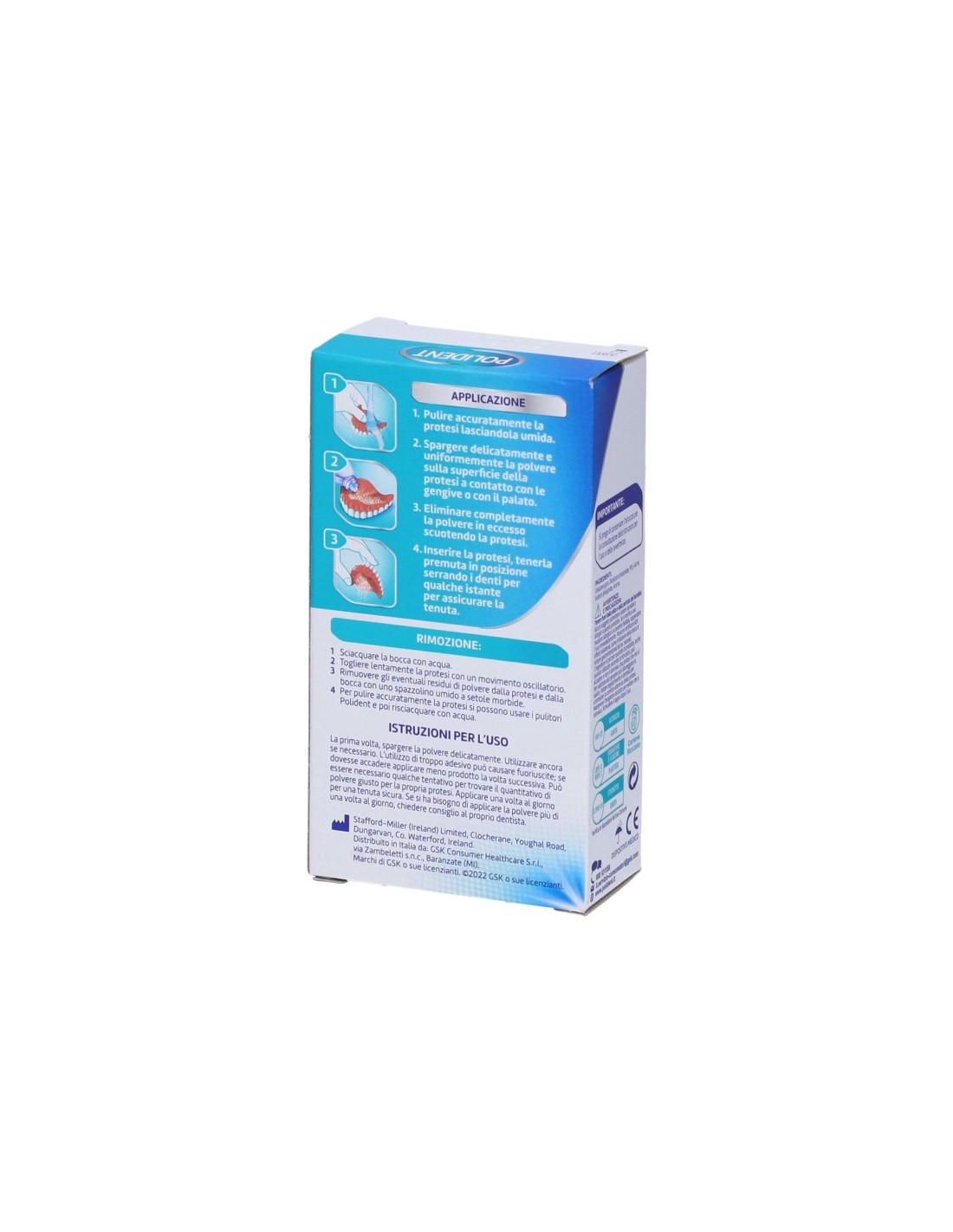 Per utilizzare Polident Polvere Adesivo per Protesi Dentale al meglio, inizia pulendo accuratamente la dentiera e assicurati che sia completamente asciutta prima dell'applicazione. Spargi uno strato sottile e uniforme di polvere sulla superficie interna della protesi. È importante non utilizzare una quantità eccessiva di prodotto per evitare che fuoriesca. Dopo aver applicato la polvere, posiziona con cura la dentiera in bocca e premi fermamente per alcuni secondi per garantire una tenuta sicura. Attendi qualche minuto prima di mangiare o bere per permettere all'adesivo di fissarsi correttamente. Se necessario, puoi rimuovere eventuali residui di polvere con un panno umido. Ricorda di conservare il prodotto in un luogo fresco e asciutto per mantenerne l'efficacia.