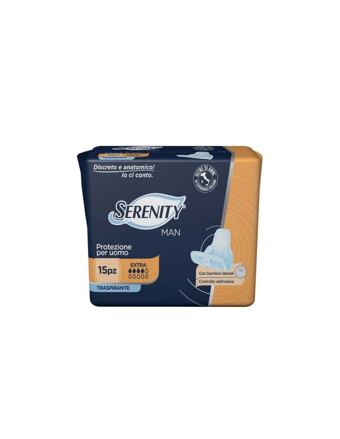 Gli assorbenti Serenity Man nascono da oltre 35 anni di esperienza Serenity con una attenzione tutta dedicata alle esigenze specifiche maschili.
