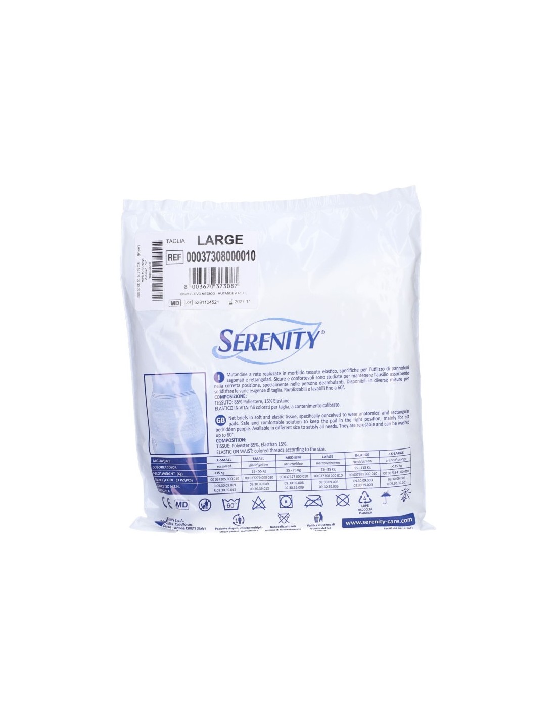 Un aiuto discreto e quasi invisibile, pensato per un'elevata discrezione. Indispensabile per pannoloni sagomati e rettangolari Serenity, perché ti aiuta a mantenerli nella posizione corretta e offrirti grande protezione.