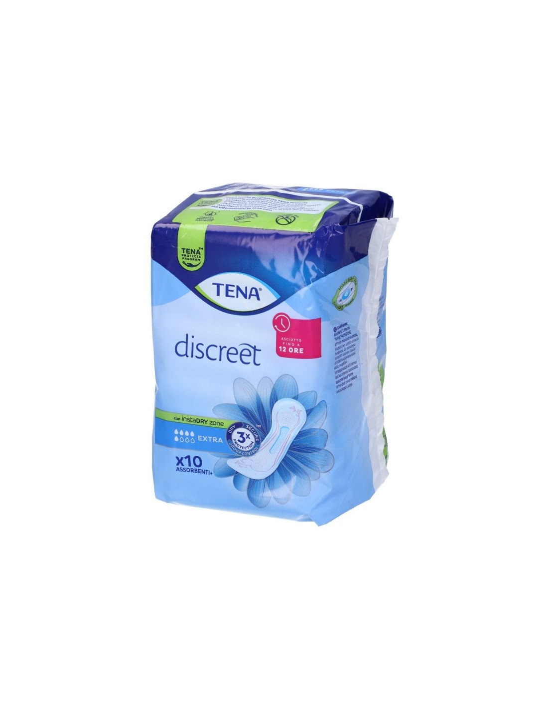Offrendo anche Tripla Protezione da perdite, odori e sensazione di bagnato, TENA Discreet Extra è la scelta quotidiana per le donne con perdite urinarie moderate.