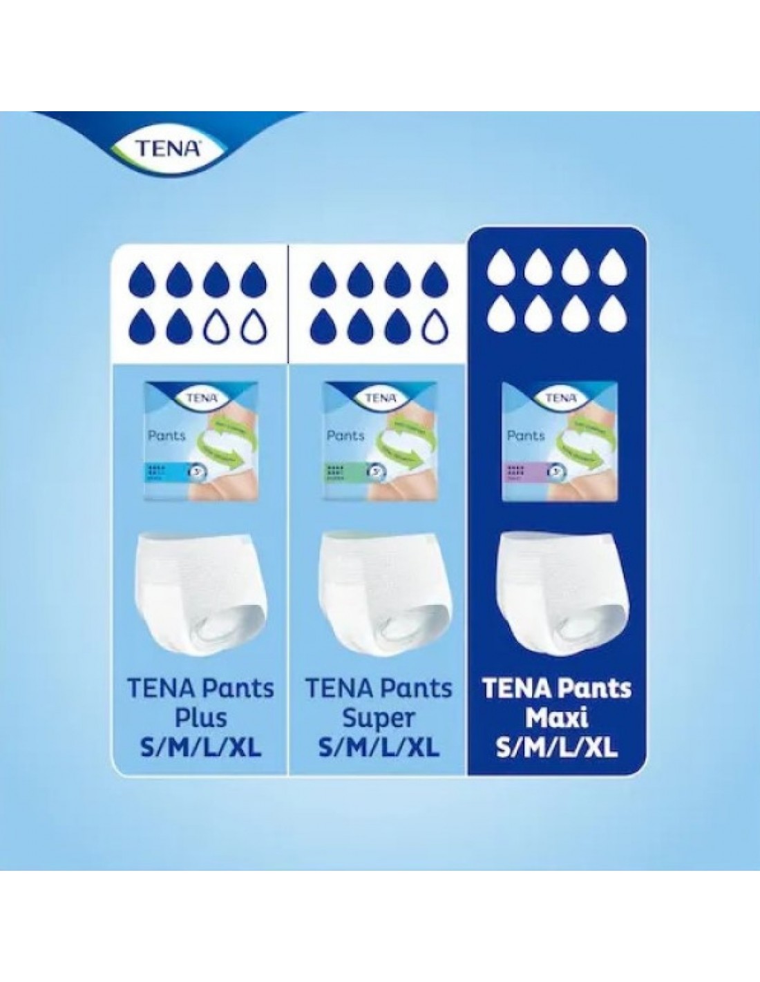 TENA Pants Plus è una mutandina assorbente monouso morbida e confortevole studiata sia per lui che per lei.. Questa mutandina si indossa come la normale biancheria intima, ha una forma anatomica, un rivestimento esterno in tessuto non tessuto traspirante e offre un piacevole comfort.