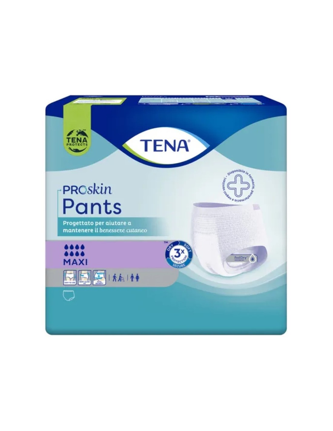 TENA ti offre Tripla Protezione da perdite, odori e sensazione di bagnato sulla pelle.