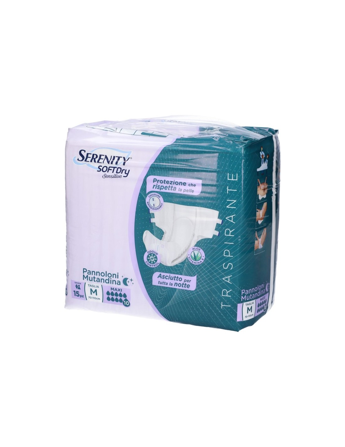 Serenity SoftDry Sensitive Pannolone Mutandina Maxi Taglia M 15 Pezzi