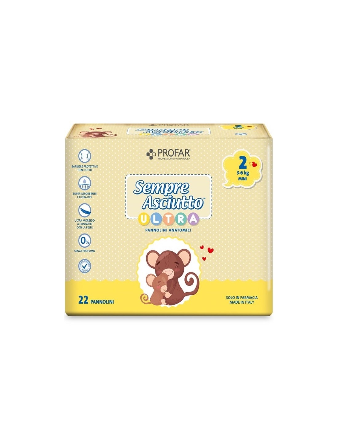 Profar Smepre Asciutto Ultra Pannolini Anatomici 3/6 kg Mini 22 Pezzi
