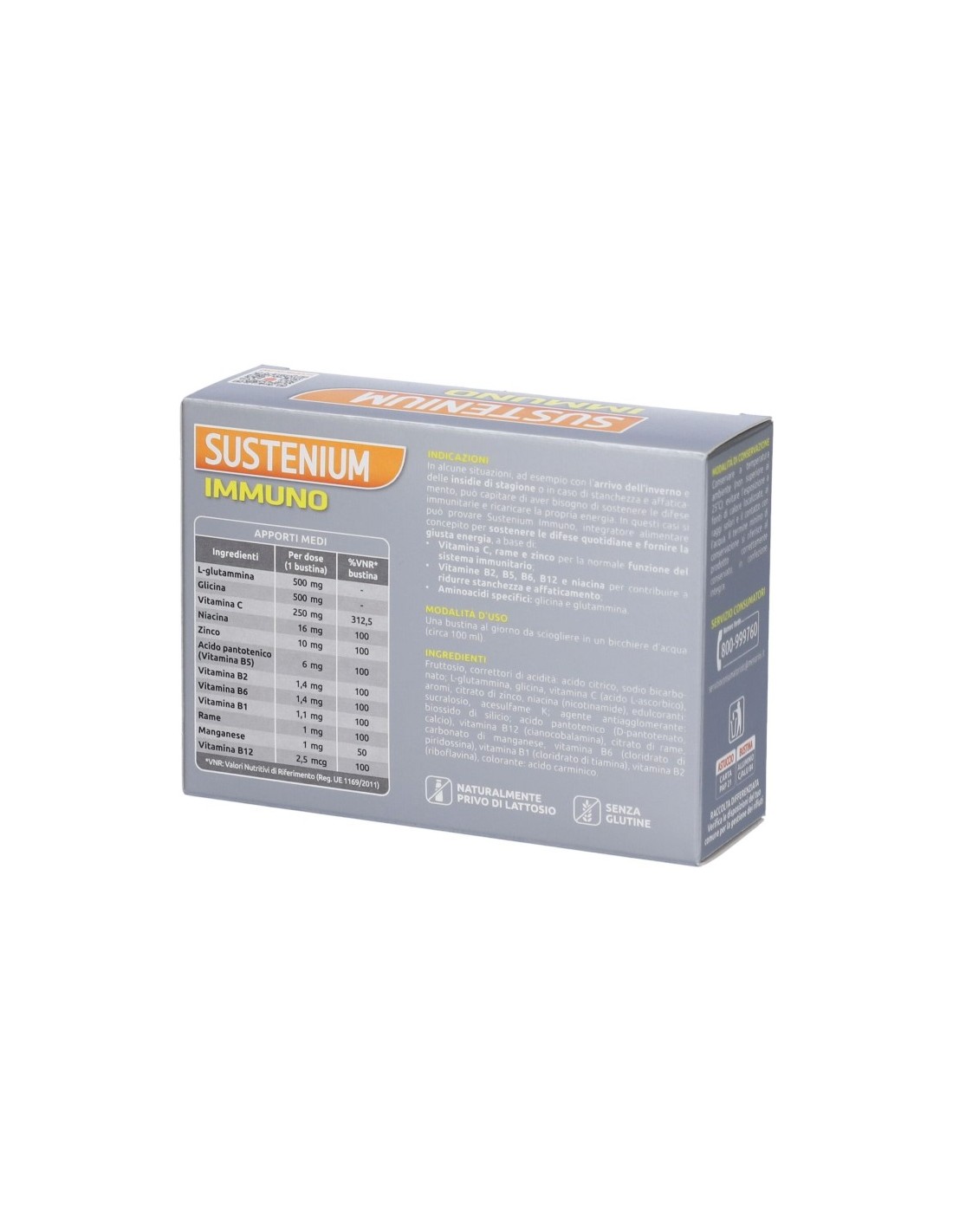 Integratore alimentare a base di Vitamine del gruppo B, Acido pantotenico, Vitamina PP e Vitamina C, con Rame, Zinco, Manganese, Glutammina e Glicina. Le vitamine del gruppo B, in sinergia con Acido pantotenico e Vitamina PP, aiutano il regolare metabolismo energetico. Grazie al contributo di Zinco, Rame e delle Vitamine C, B6 e B12, il prodotto supporta il normale funzionamento del sistema immunitario. Rame, Zinco e Manganese, in sinergia con le Vitamine C e B2, svolgono un’azione antiossidante contribuendo a proteggere le cellule.