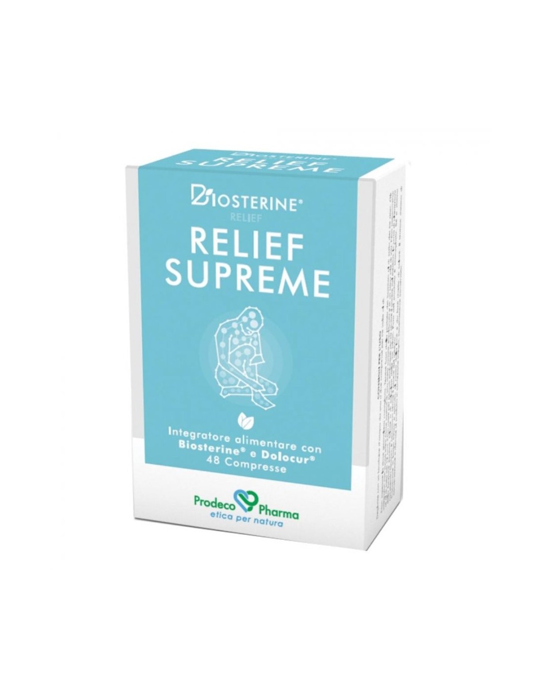 Integratore alimentare a base di Biosterine (Fitocomposto costituito da basilico santo e salvia officinale, titolato al 40% in acido rosmarinico), Dolocur (Complesso naturale di Curcuma longa L. e.s. e polvere), boswellia e acido ialuronico.
