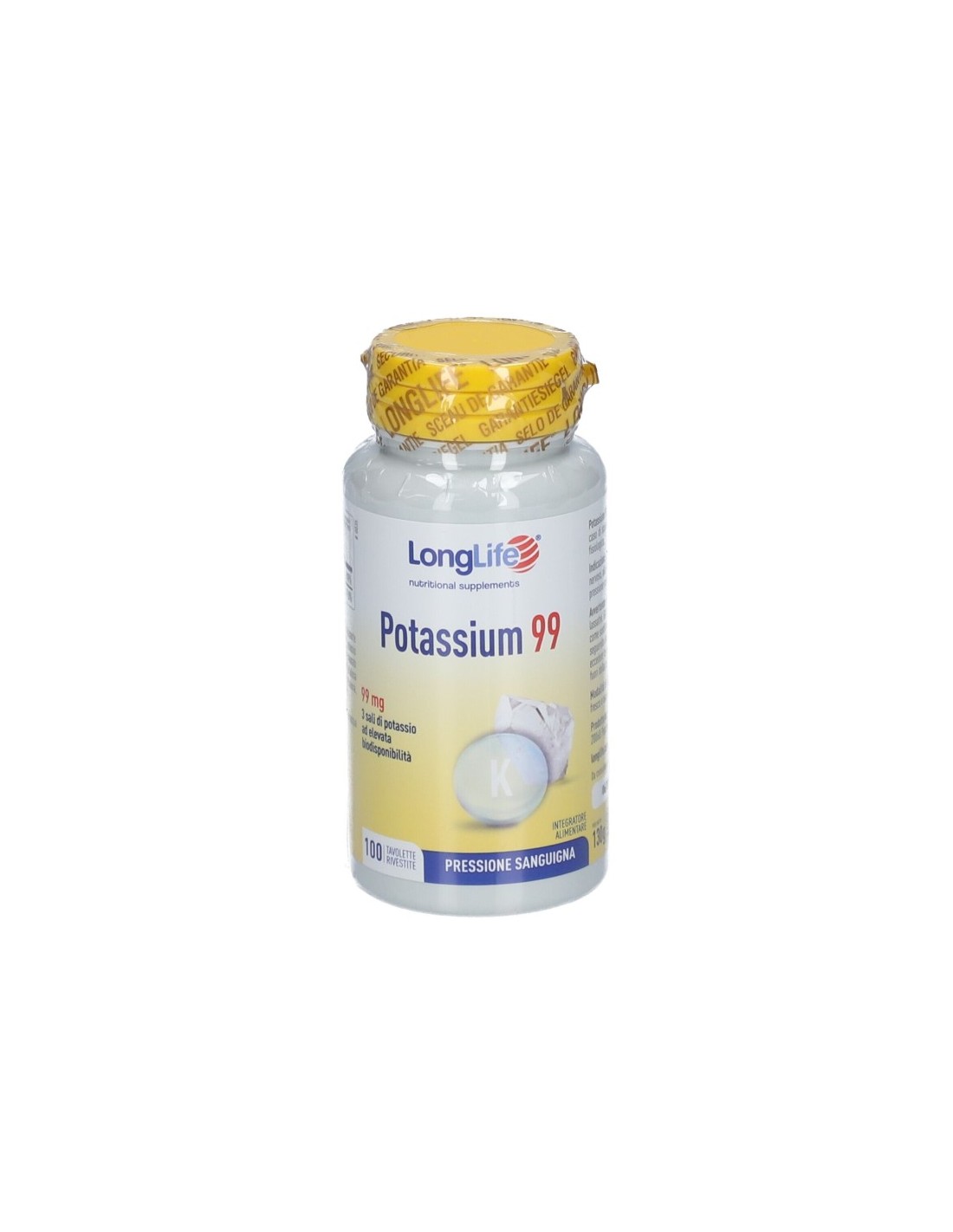 Integratore alimentare di potassio utile per mantenere stabile la pressione del sangue e la funzione neuromuscolare. Adatto a vegetariani e vegani.